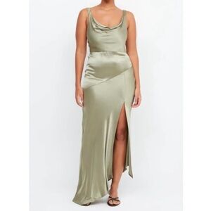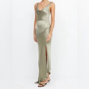 Bec + Bridge Mood Dance Cowl Neck Maxi Dress Satin Gown Sage Green Size US 14