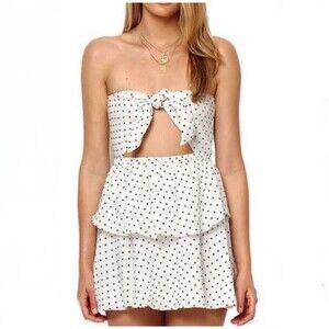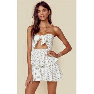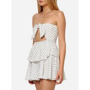 Bec & Bridge Petit Miam Tie Mini Dress Playful Polka Dot Tiered Ruffle Skirt Sz2