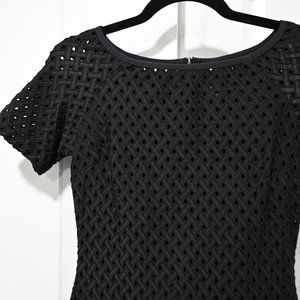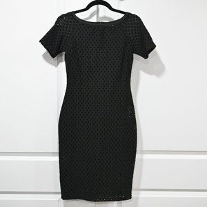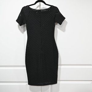 Sheath underneath with an modern eyelet form fitting dress-- has stretch and is a comfortable material.