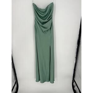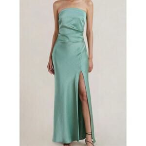 Make and entrance in the Symone Strapless Dress. Featuring statement side tuck detailing, an upward arc neckline and an alluring thigh-high split, the maxi dress is cut on the bias and finished with an invisible side-seam zipper.