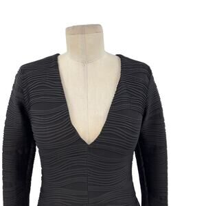 Bec & Bridge Textured Bodycon Mini Dress Ribbed Long Sleeve Black Size US 4