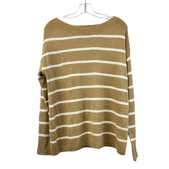 Becaal Women’s Long Sleeve Boat Neck Beige/White Striped Pullover Sweater S Soft