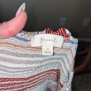 Becaal dress stripped strapless midi light weight brick white SZ SM swim/beach