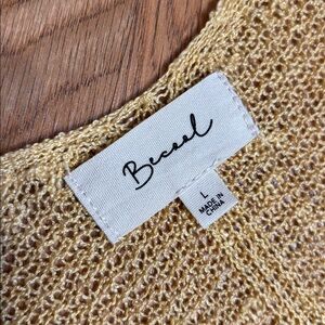 Becaal, elegant buttercup yellow long sleeve crochet cardigan blouse. Size L.