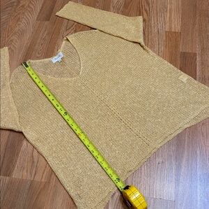 Stay cozy and stylish with this vibrant yellow V-neck sweater. Perfect for layering or wearing on its own, this sweater adds a pop of color to any outfit. Soft fabric with stretch. Bohemian, indie, chic, whimsy goth, casual style. Great condition/ pre-owned.