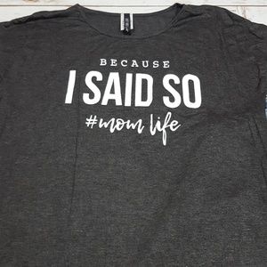 "Because I Said So" #momlife Graphic Top Fun "Because I Said So" short sleeve graphic tee. Super soft, lightweight fabric. Color: Charcoal Gray New 96% Rayon 4% Spandex Hand Wash/Line Dry Made in USA D01.1808.34