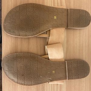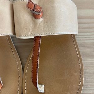 Barely worn Because Music is My Heartbeat leather thong sandals. Tan all over with caramel accent strap. Size 10.