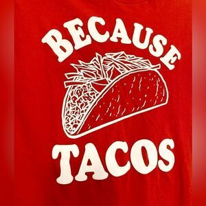 Because Tacos! Red women’s T-shirt size medium. 100% cotton