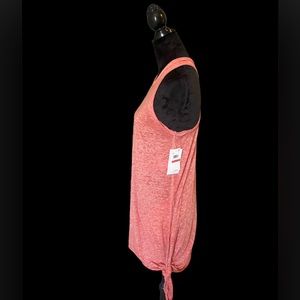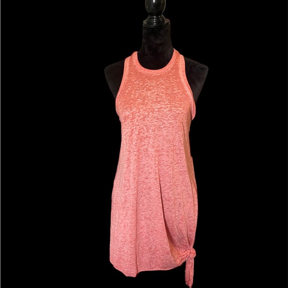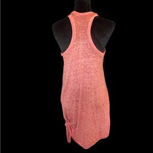 A cute racerback tank dress for the pool and beyond is cut from a light, airy slubbed knit and casually gathered with a knot at the hem.