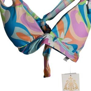 Becca All That Glitter Blue Multicolor Print Halter Tie Back Bikini Swimsuit Top