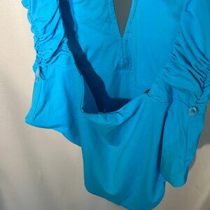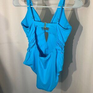 Becca By Rebecca Virtue One Piece Deep Plunge Swimsuit in Blue Size Large