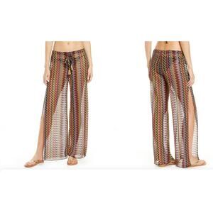 Becca Carnavale Swim Cover-Up Pants Side Slit Crochet Sheer Rainbow Size S **