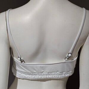 A cool cami silhouette gives modern vibes to Becca's bikini top, a sleek scoop neck design finished with a stylish smocked waistband.