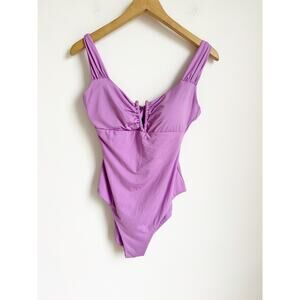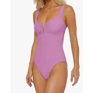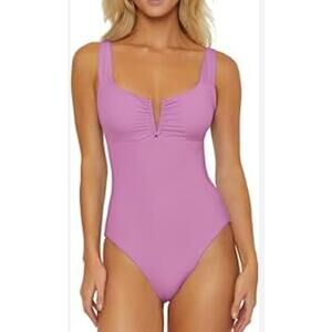 Becca Color Code Viviana Plunge One Piece Swimsuit Lavender Purple Size 4
