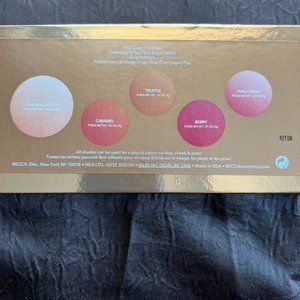 Becca Cosmetics Pop Goes the Glow Palette. This Limited collector’s edition palette features five festive, multi-use shades so you can highlight, define, blush, and bronze. Shades are: Champagne Pop (highlighter and eye shadow): peachy champagne with a luminous finish, Pink Crème (highlighter, blush, and eye shadow): dusty rose with gold reflects and a luminous finish, Truffle (highlighter, blush, and eye shadow): warm bronze with gold reflects and a luminous finish, Caramel (bronzer, blush, and eye shadow): golden toffee with a luminous finish and Berry (blush and eyeshadow): mulberry with soft pink reflects and a luminous finish. NEW.