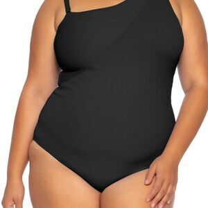 Becca Etc Ribbed Fine Line One-Shoulder One-Piece Swimsuit Size 2X