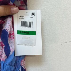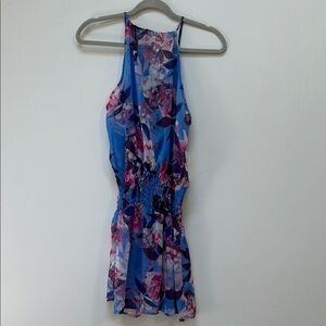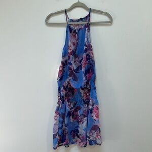 Becca Floral Smocked Waist Swim Coverup Dress Tropical Floral Blue Size Large