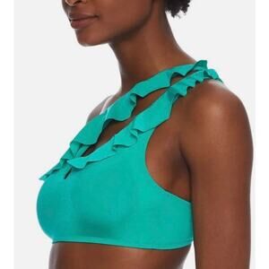 Becca Jasper Socialite Vivienne One Shoulder Ruffle Bikini Swim Top L NWT