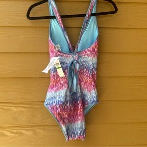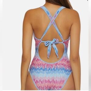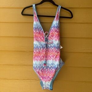 Becca Joshua Tree Corset One Piece Swimsuit In Multi Blue NWT Size Large