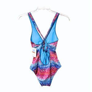 Becca Joshua Tree Corset One Piece Swimsuit In Multi Blue NWT Size Small S