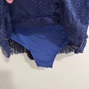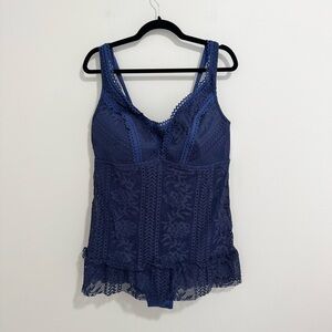 Becca NWT Lace Overlay Blue One Piece Swimdress