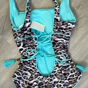 NWT - Becca Olivia Square Neck Animal Print One Piece Swimsuit