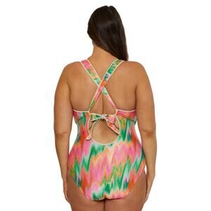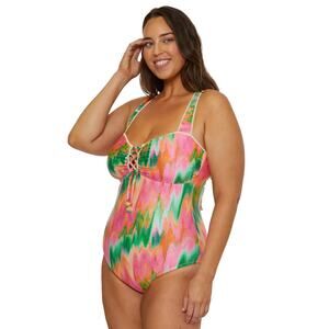 Becca Plus Size Mirage Lace-Up One-Piece Swimsuit Multi Size 2XL 0612