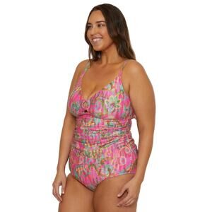 Becca Plus Size Polynesia Printed Ring Tankini Top Multi Size 3XL 0627