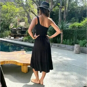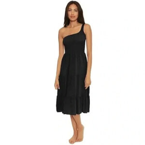 Becca Ponza Smocked Cover-Up Women's Midi Dress, black, size medium, pre…