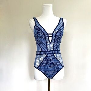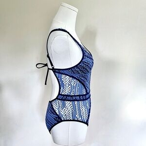 Becca Reveal Crochet One Piece Swimsuit XS Monokini Resort Honeymoon Pool Party
