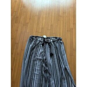 Becca See Thru Striped Swim Pants Gray White Black Women's XL 16 18 Great condition!