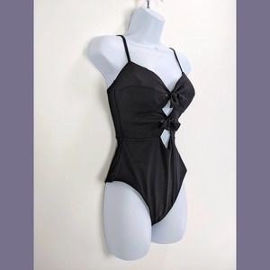 Becca Size M Womens Double Tie Front One-Piece Swimsuit In Black