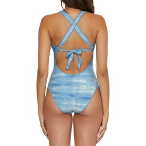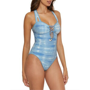 Becca Standard Washed Away Bandeau Lace Up One Piece Swimsuit Ice Blue Size S