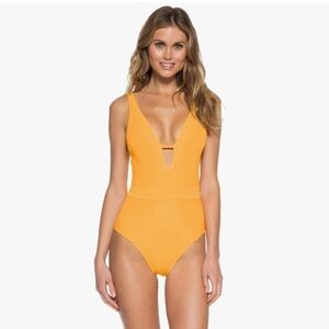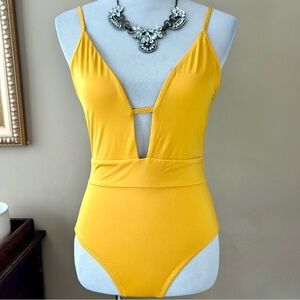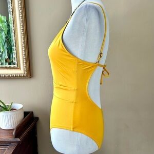 Becca Swim Rebecca Virtue One Piece Swimsuit Tie Back Yellow Plunge Size S