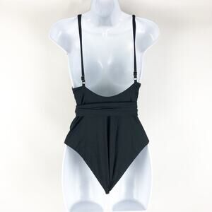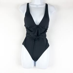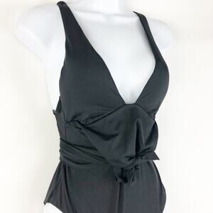 Becca Swim Womens One Piece Swimsuit Small Black Tie Waist Plunge Vneck NWT