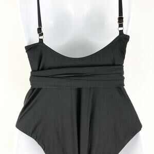 Becca Swim Womens Color Coded Cinched Waist One Piece Swimsuit Small Black