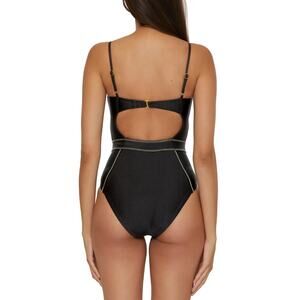 Becca Women's Color Sheen Corset-Seamed One-Piece Swimsuit Black Size S 0181
