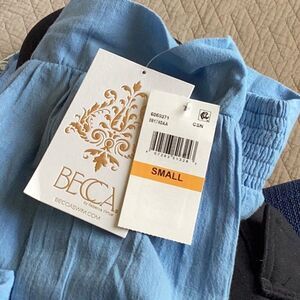 Becca Women's Gauzy Smocked Waist Pants, Swim coverup, Coastline, Small, NWT