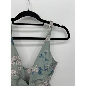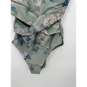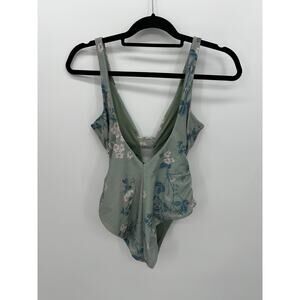 Becca Womens Green Floral Deep V Neck One Piece Bathing Suit Swim Size M Ruched