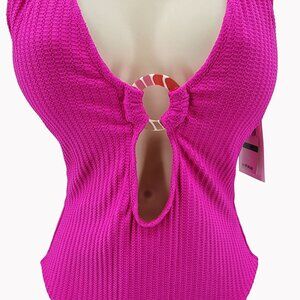 Becca Women’s Large Pink Cut Out Textured One Piece Swimsuit New $138 tags