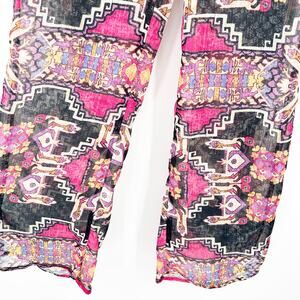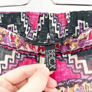 Becca Womens Resortwear Boho Hippie Aztec Sheer Wide Leg Pants Swim Cover Up in Black and Pink. Size large.