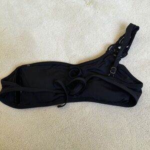 Becca by Rebecca Virtue Black One Shoulder Asymmetrical Macrame Bikini Top