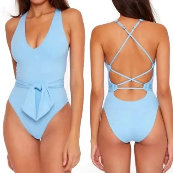 Becca by Rebecca Virtue Color Code Blue Kali Belted One Piece Swimsuit size L