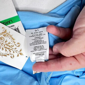 Main picture shows belted bow around the front, I chose to take pics with bow in the back. One belt piece has slight discoloration, I do believe will come out in the wash, but with it being NWT, I didn't want to run it through the machine. Price reflects the discoloration.