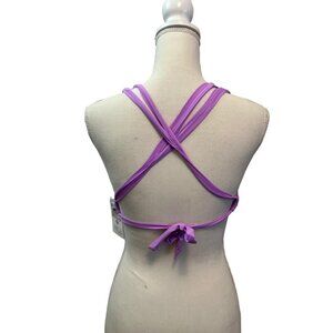 Becca by Rebecca Virtue Orchid Color Code Split Strap Halter Swim Top, Size Small. Orchid colored nylon-spandex blend, ideal for women.