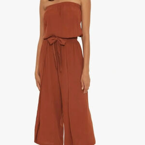 Becca by Rebecca Virtue Ponza Crinkled Rayon Jumpsuit CoverUp Bronze size large