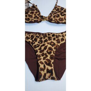 Becca by Rebecca Virtue Triangle Top Bikini Set Reversible Leopard Size Medium