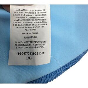 -Silver metallic fabric w/ blue threaded edge stitch