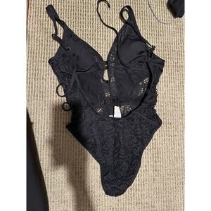 Becca by Rebecca Virtue Women's One Piece Swimsuit, Crochet Lace Black Small NWT