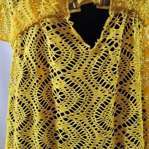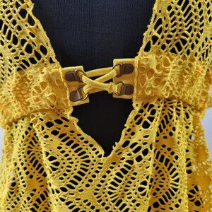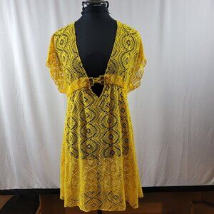 Becca by Rebecca Virtue Yellow Lace Crochet Beach Cover-Up Dress M/L